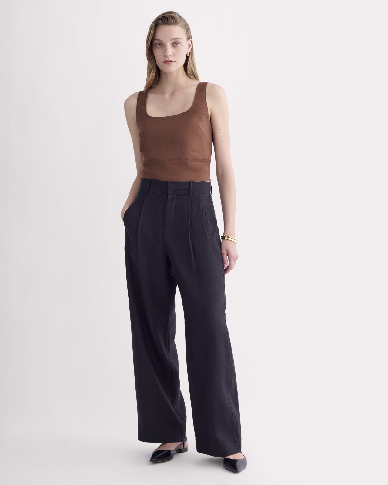 This cropped square-neck tank is made from European Flax™ Linen with a touch of stretch for a comfortable, airy fit.