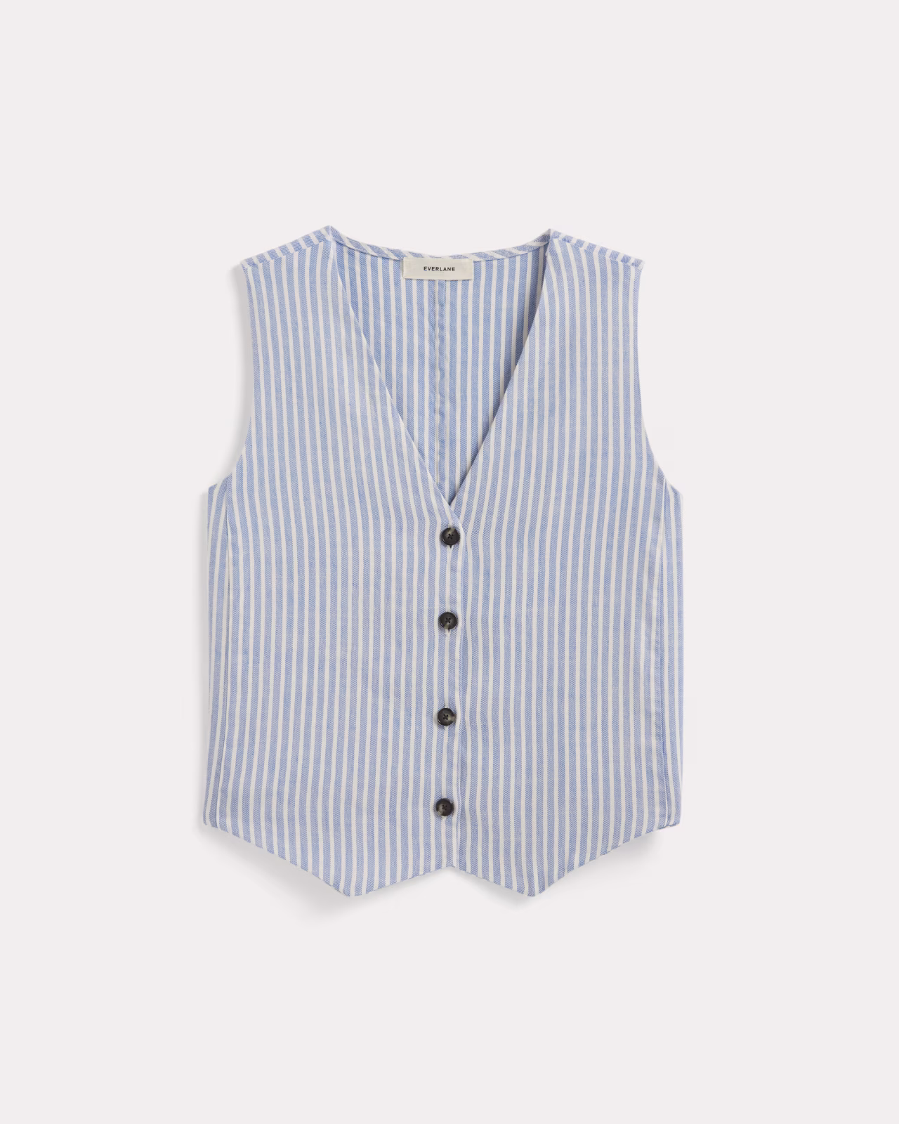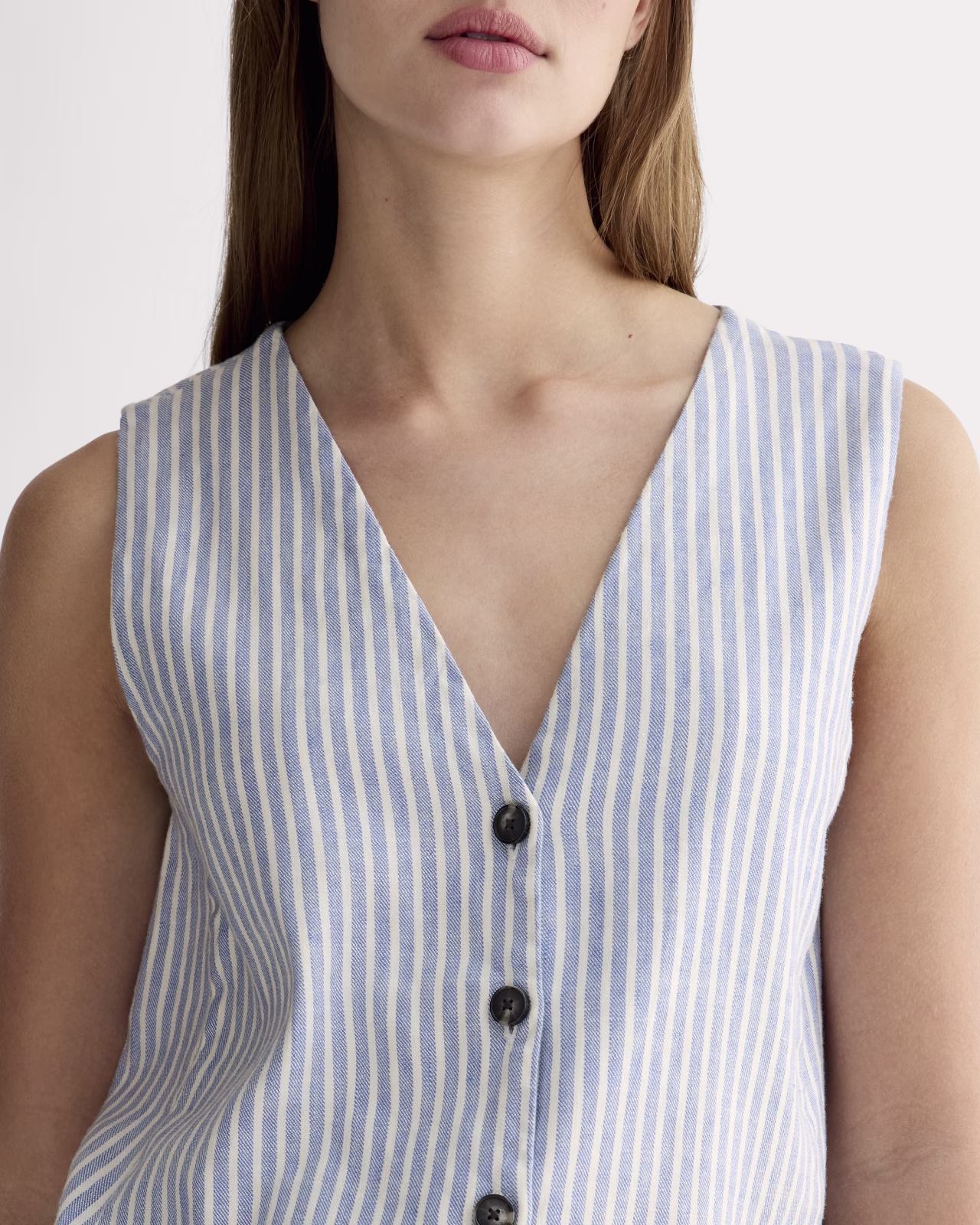 A top that plays well with others or carries the outfit on its own, the Linen Vest features a relaxed, cropped, sleeveless V-neck silhouette, and is fully lined with a lightweight cotton blend. You're going to need this in every color.