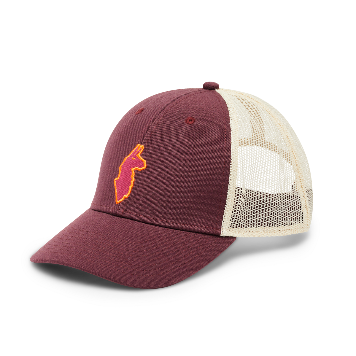 Equipped with a mesh back panel, an adjustable snapback closure, and a woven patch graphic, the Llama Trucker Hat is 100% recycled comfort.
