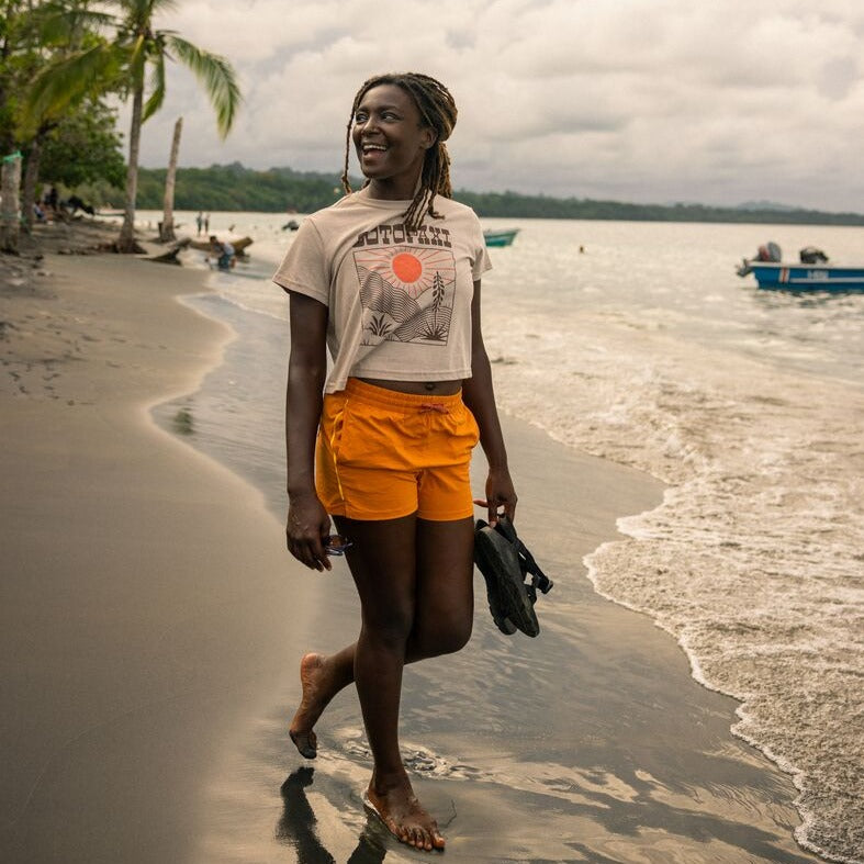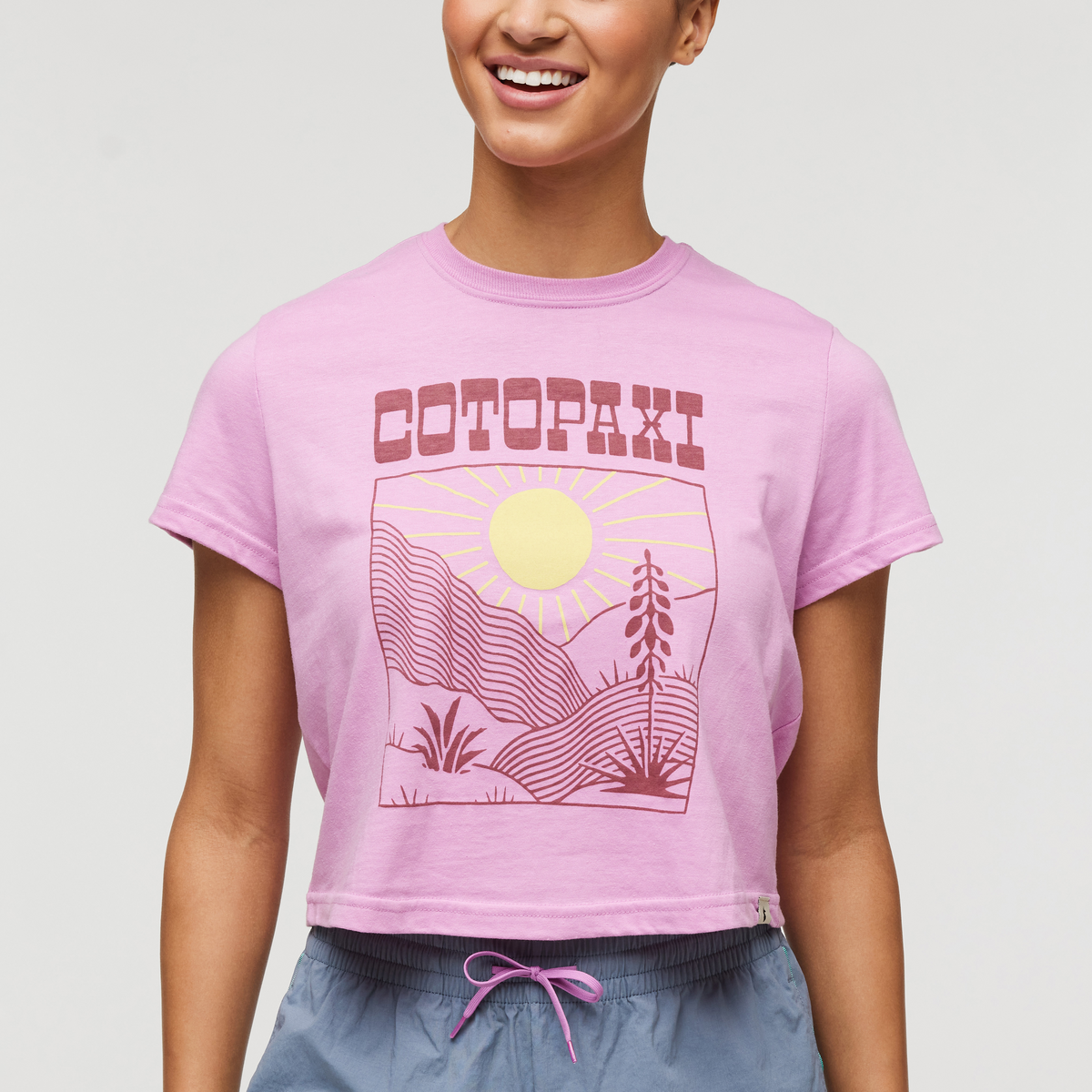The Western Hills crop is softer on your skin and softer on our planet with an organic cotton-recycled polyester fabric blend.