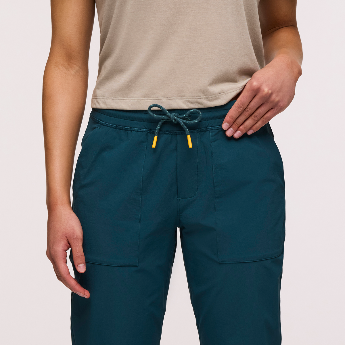 - Adjustable waistband drawcord that exits to interior or exterior