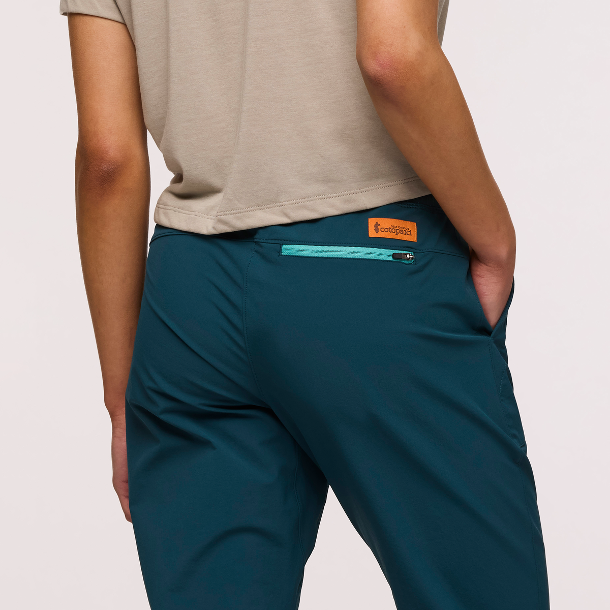- Zippered back pocket